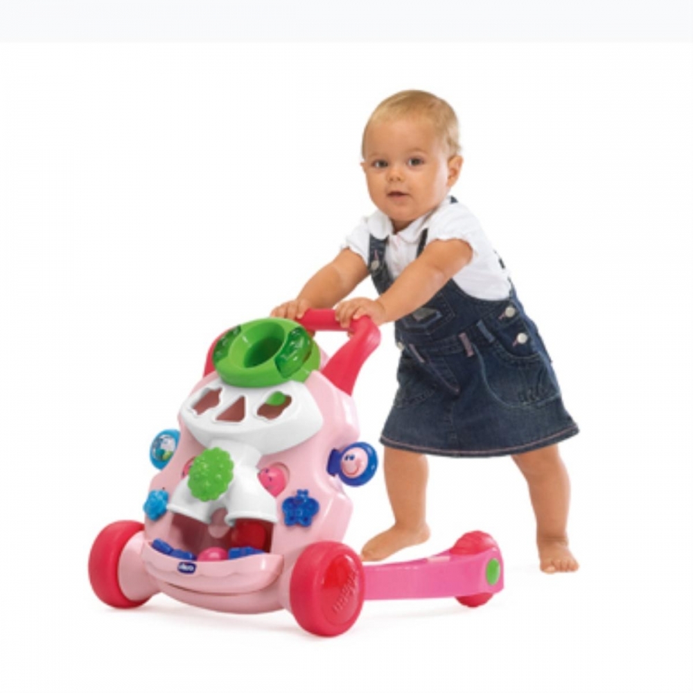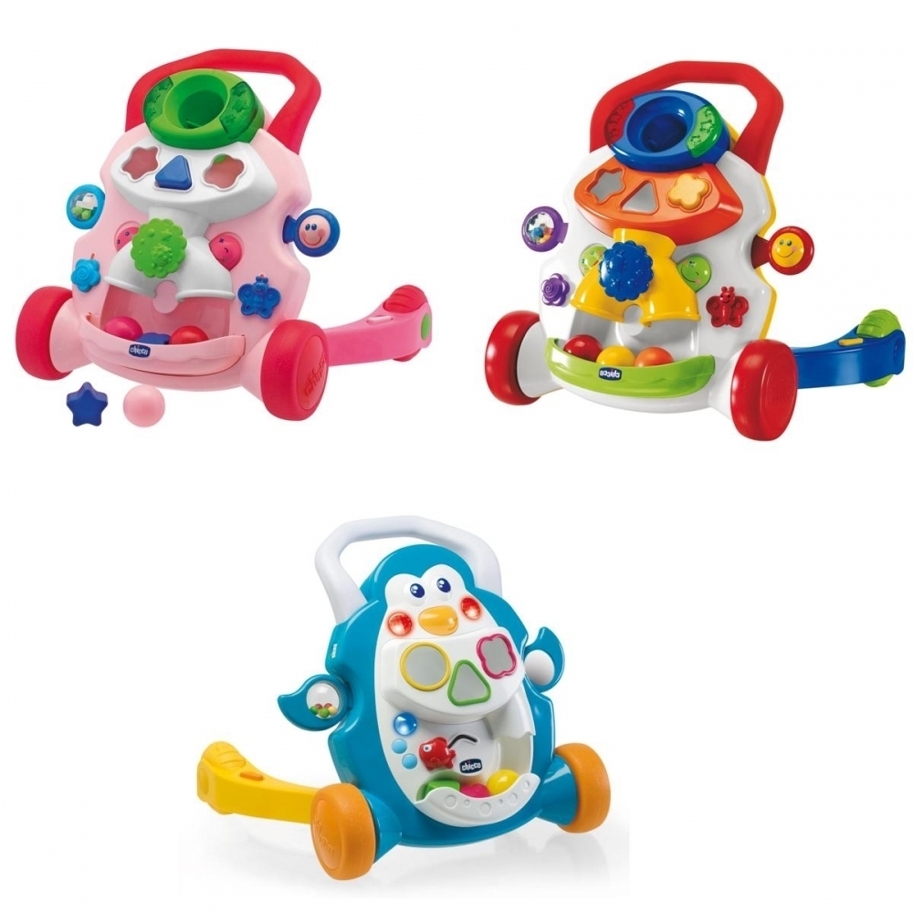 Verfügbar in Grundfarben Rosa und Weiß und in Eisblau im Pinguin-Design ist das Chicco Mobil für agile Kinder, die sich gerade aus dem Krabblerdasein in die Vertikale bewegen. Das fahrbare Spielzeug fest in den Händen, schieben die kleinen Racker in jeden Winkel der Wohnung wo sie sich dann niederlassen und mit den verschiedenen Aktivitätsmöglichkeiten spielen. Stabiler Stand des Schiebefahrzeugs dank dreier weit auseinanderstehender Räder.