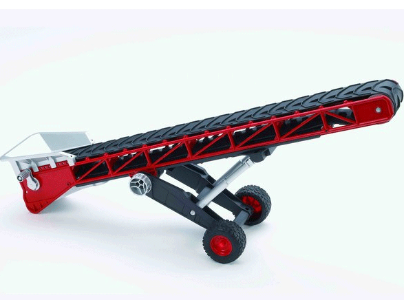 Dieses Förderband im Massstab 1:16 erleichtert den Menschen den Transport von Schüttgütern wie Sand, Kies usw. Aber auch für Strohballen, Holzscheide, also Festkörpern wird das Förderbankd gern benutzt.