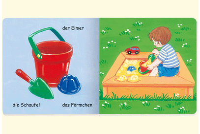 Mit dem Bilderbuch Spielzeug musst du anhand von Vignetten Gegenstände erkennen und wieder finden. Wo ist die Schaufel mit den passenden Sandförmchen und hast du den roten Eimer gesehen? Gehe auf die Suche und versuche alles genau zu beschreiben, denn so wirst du ganz schnell Sprechen lernen. Hast du ähnliches Spielzeug wie in dem Buch auch zu Hause?