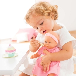 Mon Premier Bébé Calin Cupcake kommt mit blauen Schlafaugen zu Dir und ist die ideale erste Babypuppe für Dich im Alter von 18 Monaten und mehr. Passende Grösse um in Deinen kleinen süssen Ärmchen gehalten zu werden. Corolle Puppen duften zart nach Vanille.