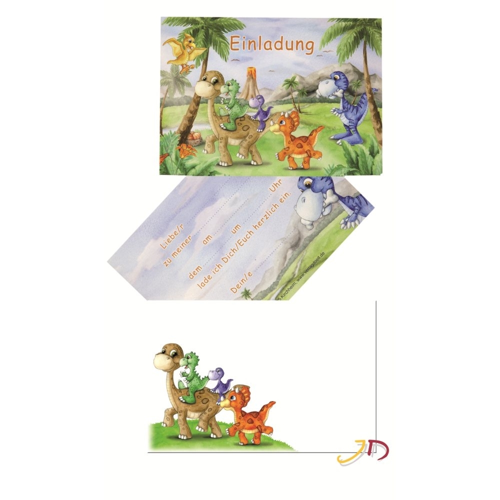 Einladungskarten lassen sich zügig schreiben, wenn die wichtigsten Worte schon vorgeschrieben sind, denn dann kommen auch Schreibmuffel und Erstklässler schnell zum Ziel. Die Karten im Dinosaurier-Style lassen sich in schicke Umschläge einlegen und schon bald kann das Fest beginnen!