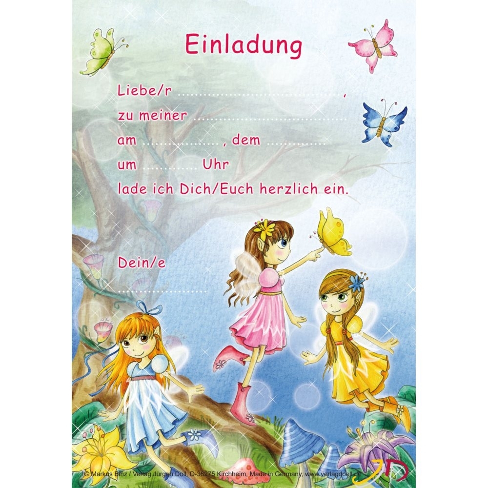 Um schön zu feiern, müssen viele Gäste ins Haus geladen werden. Der Vorrat an 12 Einladungskarten zur Feen-Party dürfte daher schnell aufgebraucht sein. Auf den bebilderten Einladungen lässt sich vorgegebener Text ergänzen und dann in beiliegenden Umschlägen an die kleinen Gäste schnell verschicken!