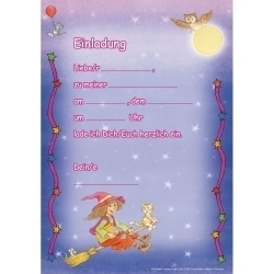 Zur zauberhaften Party für Zauberer und Hexen lädt man passend zum Thema mit diesen Einladungskarten ein! Den vorgegebenen Lückentext können bereits Schreibanfänger selbst ergänzen, danach kommen die Karten in ihre Umschläge und zur Post! Für magische Treffen und fröhliche Feiern unter kleinen Fans der Zauberei!