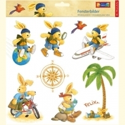 Wer kennt ihn nicht? Den kleinen Hasen Felix? Mit den sehr schönen Fensterbildern kann man auf einfache Art und Weise jedes Fenster wunderschön mit diesen Abbildungen dekorieren. Aber auch alle anderen glatten Glasflächen können mit dem kleinen Felix beklebt werden. Der kleine Hase Felix wird zum Blickfang in jedem Kinderzimmer.