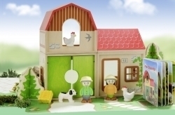 - Als Spielfläche vor dem Haus ist ein kleiner bedruckter Teppich aus Filz mit dabei.