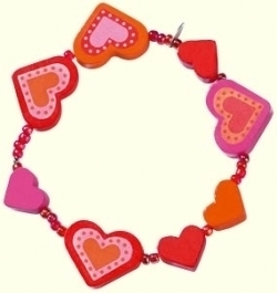 Niedlich, bunt und robust auch in ganz kleinen Kinderhänden! Das Kinderarmband mit rosa, orange und rot dekorierten Herzelementen aus Holz an einer elastischen Kordel wird viele kleine Mädchen glücklich machen. Zum weißen T-Shirt oder lustigen Ringelpulli wirkt das Armband als Schmuckaccessoire bunt und fröhlich!
