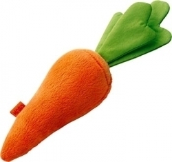 Karotten sind nicht nur gesund für die Augen, sondern auf jedem Frischmarkt anzutreffen. Diese tollle, weiche Möhre aus Velours, Baumwolle und Polyester ist eine tolle Spielergänzung für den Verkaufsladen.