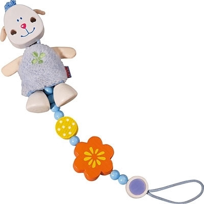 Wolli ist ein süsses Schaf, das seinen Blumen von der Wiese mitgebracht hat und gut aufpasst, dass der Schnuller nicht verloren geht.