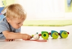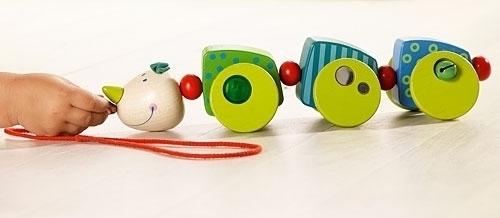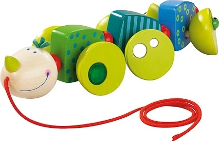 Ziehfigur Raupe Ricki wackelt wie ein Dackel durch das Kinderzimmer. Lustige, farbenfrohe Raupe, die unterwegs das Glöckchen erklingen lässt. Weitere optische und akustische Elemente zieren die Raupe Ricky und lassen sie so zum Lieblingsspielzeug von Kleinkindern werden.