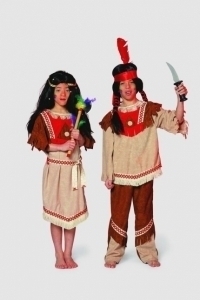 Das einteilige Indianerkleid ist besonders praktisch für sehr kleine Squaws, die es gern bequem mit der Verkleidung haben! Das rote Oberteil mit angesetzten braunen Ärmeln ist mit Fransen und Musterband im Indianerstil besetzt. Der naturfarbene Fransenrock reicht bis weit über die Knie und kann über Leggins oder Strumpfhosen mit Stiefeln gut getragen werden!