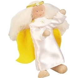 Der kleine Engel kommt zur Geburt vom Jesuskind gerade pünktlich, um den Säugling zum Schlafen zu singen, denn er ist ein kleiner Spaßvogel, der kein Kind weinen sehen kann. Das Engelchen besitzt ein Drahtskelett, das mit einem weißen, schimmernden Kleid ummantelt ist, dank seiner Flügel auf dem Rücken kann der kleine Himmels-Lausbub ganz leise zwischen Himmel und erde hin- und herschweben, ohne, dass die Kinder aufwachen.