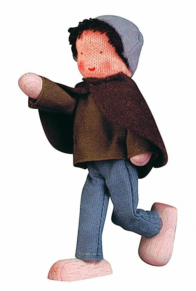 Das Hirtenkind gehört zur Gruppe von Schäfern, die in der Nähe der Grotte ihre Schafe hüten, in der Maria Jesus zur Welt gebracht hat. Die Spielfigur für die Weihnachtskrippe besitzt ein Skelett aus Draht und ist bekleidet mit den hirtentypischen Kleidungsstücken wie dunklen Hosen, Wollumhang und Mütze. Zum Rollenspiel lässt sich der Hirtenbub als Bote oder Spielkamerad vom Christkind einsetzen.
