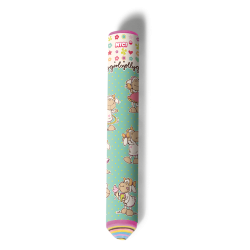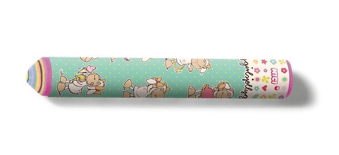 Er ist bunt! Von außen und von innen! Kaum zu glauben und auf den ersten Blick sieht man es auch gar nicht, denn dieser Stift ist gar kein Malstift, sondern ein Radiergummi! Er löscht kleine Fehler, die beim Schreiben passiert sind und sorgt dafür, dass das Blatt Papier schön sauber aussieht und das Diktat fehlerfrei abgegeben werden kann. Außen herum findet man, wenn man genau hinschaut, tolle Motive des freundlichen Schafes, das tolle Abenteuer erlebt.