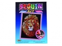 Rahmen, Overlay und ein Vorrat Pailletten in verschiedenen Farben ermöglichen die Herstellung eines schimmernden Bildes, das aus vielen kleinen Pailletten zusammengefügt wird. Das Löwenbild zum Selberbasteln entsteht, wenn die Metallplättchen entsprechend der Vorzeichnung sorgfältig aufgelegt und befestigt werden. Ein besonders prächtiger Eindruck entsteht, wenn die eindrucksvolle Nachbildung des Urwaldkönigs an einen Platz gehängt wird, an dem Licht auf das Paillettenbild fällt und alle kleinen Bestandteile glänzen und schimmern.