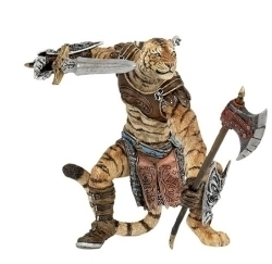 Der furchterregende Tigermensch ist unbesiegbar, denn er vereint Kräfte, Instinkt und Intelligenz von Raubtier und Mensch in seiner Gestalt. Das schwer bewaffnete Zauberwesen mit Kurzschwert und Streitaxt lässt sich im Rollenspiel als Helden oder Angreifer benutzen, das Menschen und Zauberwesen bedroht oder verteidigt, je nach Phantasie des Kindes, das hier seine Ideen in Handlung umsetzt und diese immer wieder neu erfindet.