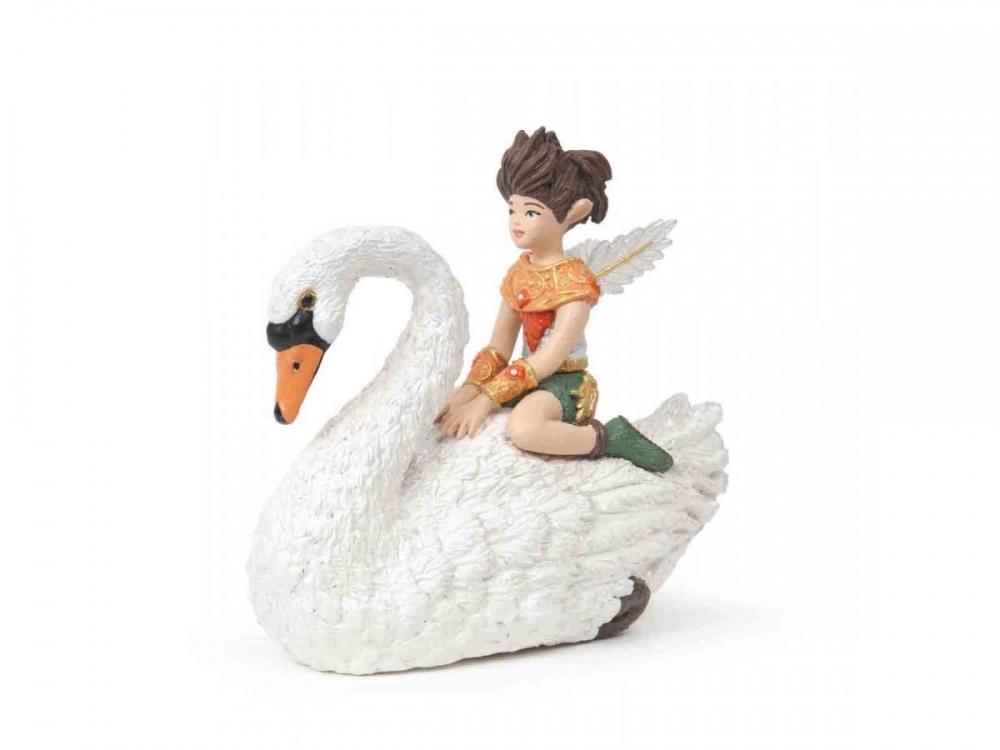 Elfenkinder lieben die Flora und Fauna und haben eine ganz enge Bindung zu allen Tieren, die in ihrer Fabelwelt leben und ihre Umgebung bevölkern. Um große Seen zu durchqueren sitzt der Elf sicher auf dem Schwanenrücken und hält sich bei der schaukeligen Überfahrt am Gefieder fest. So steuert er sicher zum anderen Ufer hinüber, wo er dann ein anderes Tier sucht, dass ihm den Weg erleichtert.