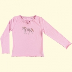 Neben den braunen Pferdefreunde Langarmshirt's ,erhältst du jetzt eines in rosa. Es ist in der Grösse 104 bis 116 und enthält einen hellgrauen Nietendruck. In unserem Onlineshop bieten wir neben Oberbekleidung noch eine Menge anderer Produkte aus der Pferdefreunde Kollektion an.
