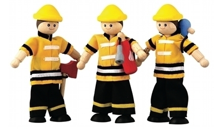Feuerwehrmann werden ist der Traum vieler Jungen. Wenn Ihr Kind auch diesen Wunsch hat, gibt es jetzt drei Feuerwehrmänner. Ein Feuerwehrmann trägt eine Axt, einer einen Feuerlöscher und einer ist mit einem Atemschutzgerät ausgestattet. Jetzt kann Ihr Kind verschiedene Situationen nachstellen und seiner Phantasie freien Lauf lassen.