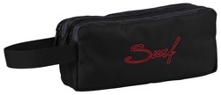 Das Schüleretui ist eine tolle Ergänzung zum Rucksack. Es hat eine aufklappbare Unterteilung mit zwei Reissverschlüssen und einem Schriftzug Surf. Er ist in rot auf das Etui gestickt und macht es so zu einem richtigen Hingucker. Das schwarze Etui wird ohne Inhalt geliefert und hat eine Schlaufe für Schreibzeuge.