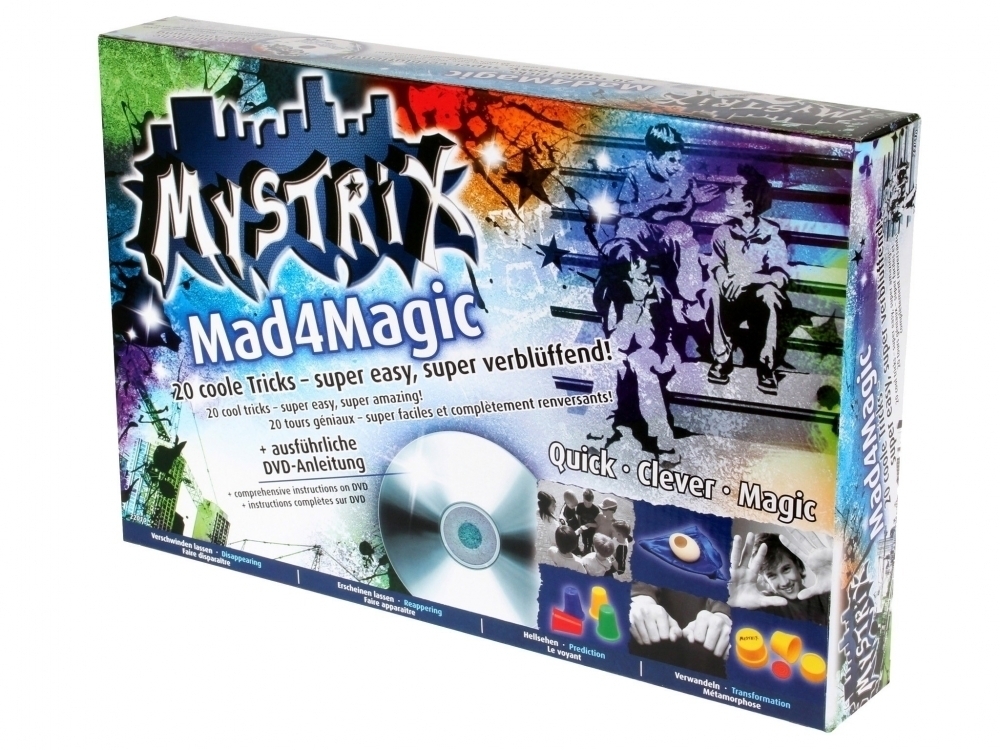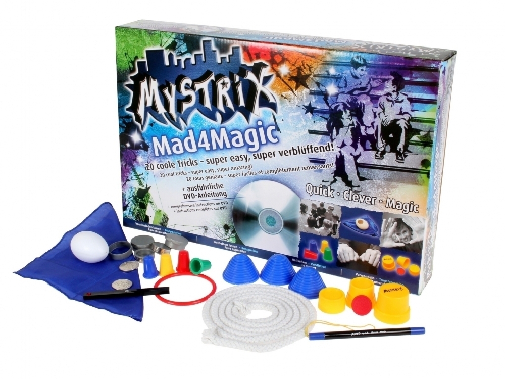 Im Mad4Magic Set enthalten sind Zubehör für 20 Tricks und eine DVD mit ausführlicher Video-Anleitung zur Durchführung von Illusionen und magischen Effekten.