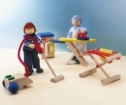 Staubsauger, Waschmaschine, Bügelbrett mit Bügeleisen und Wäscheständer sind in diesem wunderbaren Set integriert. Mit diesem Haushaltsset sind die großen und kleinen Fans von Puppenhäusern auf alles vorbereitet, was man sich nur denken kann. Jedes Gerät das in einem normalen Haushalt nicht fehlen darf ist hier integriert. Ein Set für alle Eventualitäten sozusagen. Das Haushaltsset ist aus hochwertigem, Schadstofffreiem Holz gefertigt, und passt in die meisten Puppenhäuser.