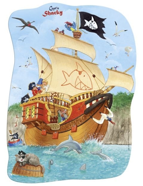 Ein Minipuzzle ist immer ein tolles Mitbringsel und lässt sich dank der übersichtlichen Anzahl von Teilen und einem tollen Motiv auch schnell legen! 30 Teile aus fester Pappe bilden zusammen gelegt das detailreiche Bild der riesigen Seeräuberkogge des gefürchteten Sharky!