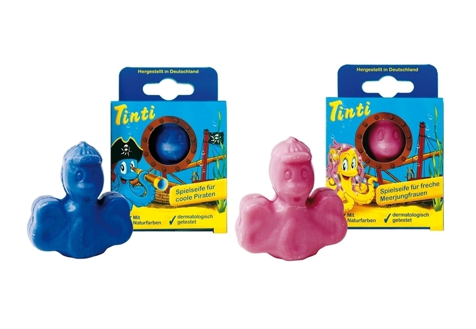Kleine Meerjungfrauen und starke Wassermänner waschen ihre glitzernden Schuppen täglich mit der milden rosafarbenen oder blaugetönten Tinti-Spielseife, die sanft zur Haut ist und wunderbar duftet! Die Seife für experimentierfreudige Mädchen und selbstbewusste Jungs ist größenmäßig auf Kinderhände ausgerichtet und macht das Bad und die Dusche zu einem echten Erlebnis, aus dem Kinder wohlriechend und sauber hervorgehen.